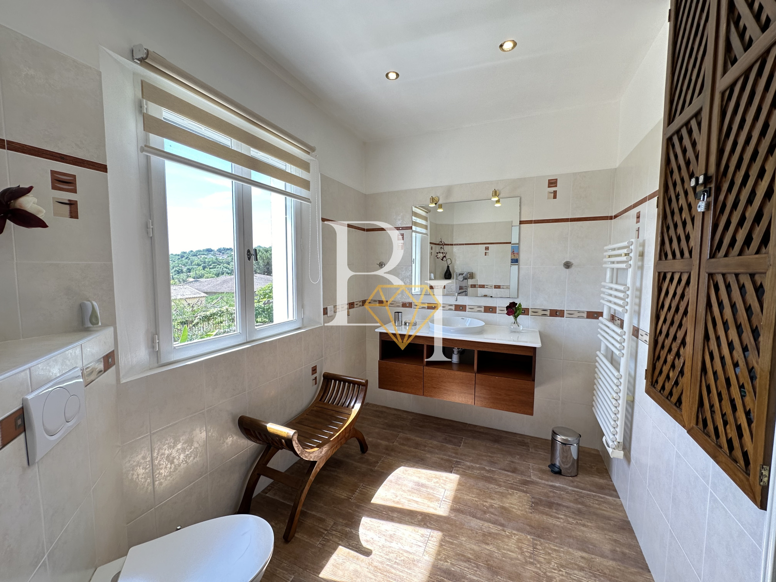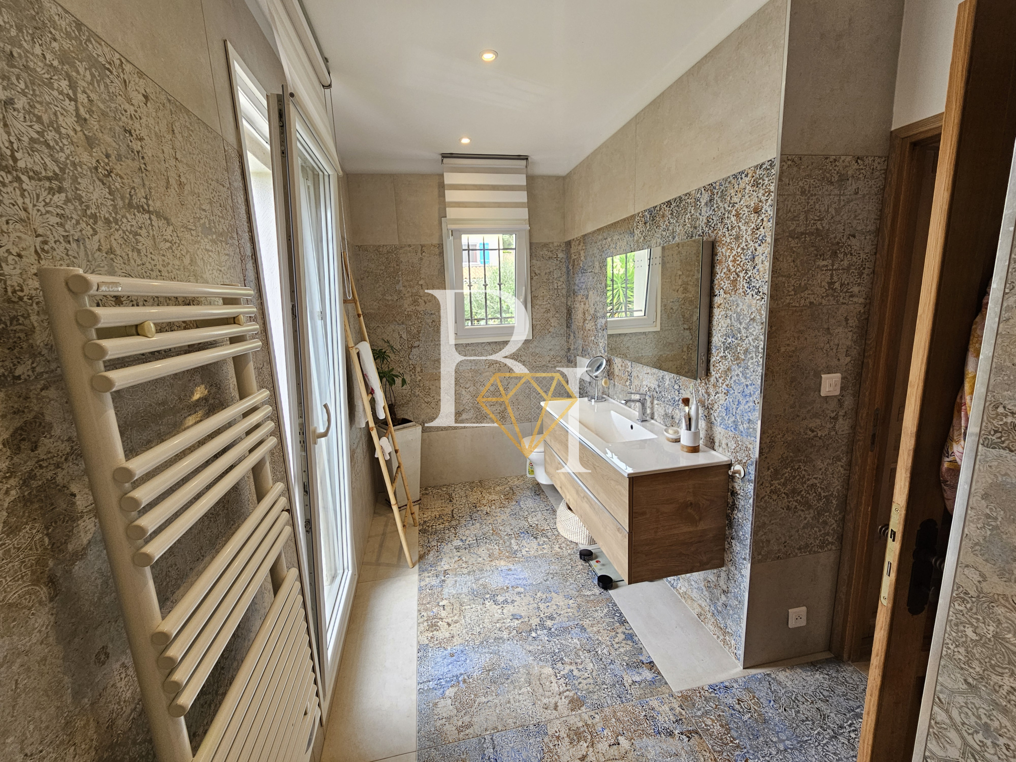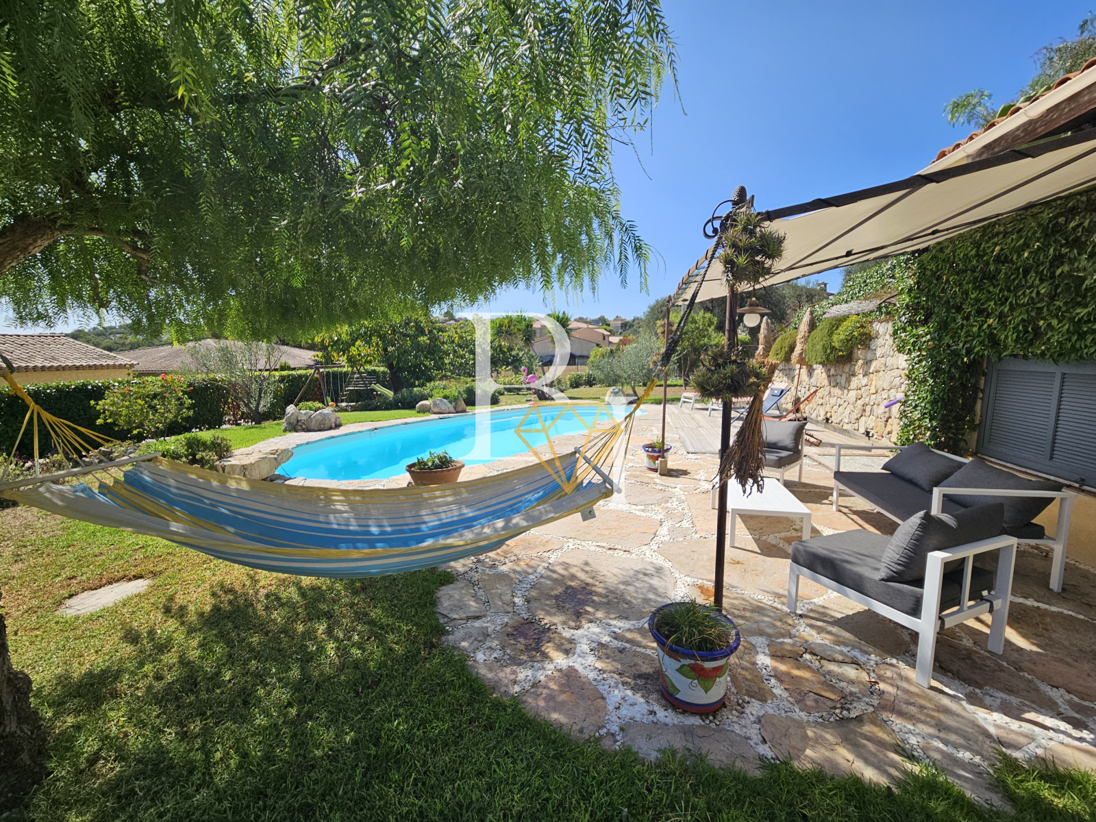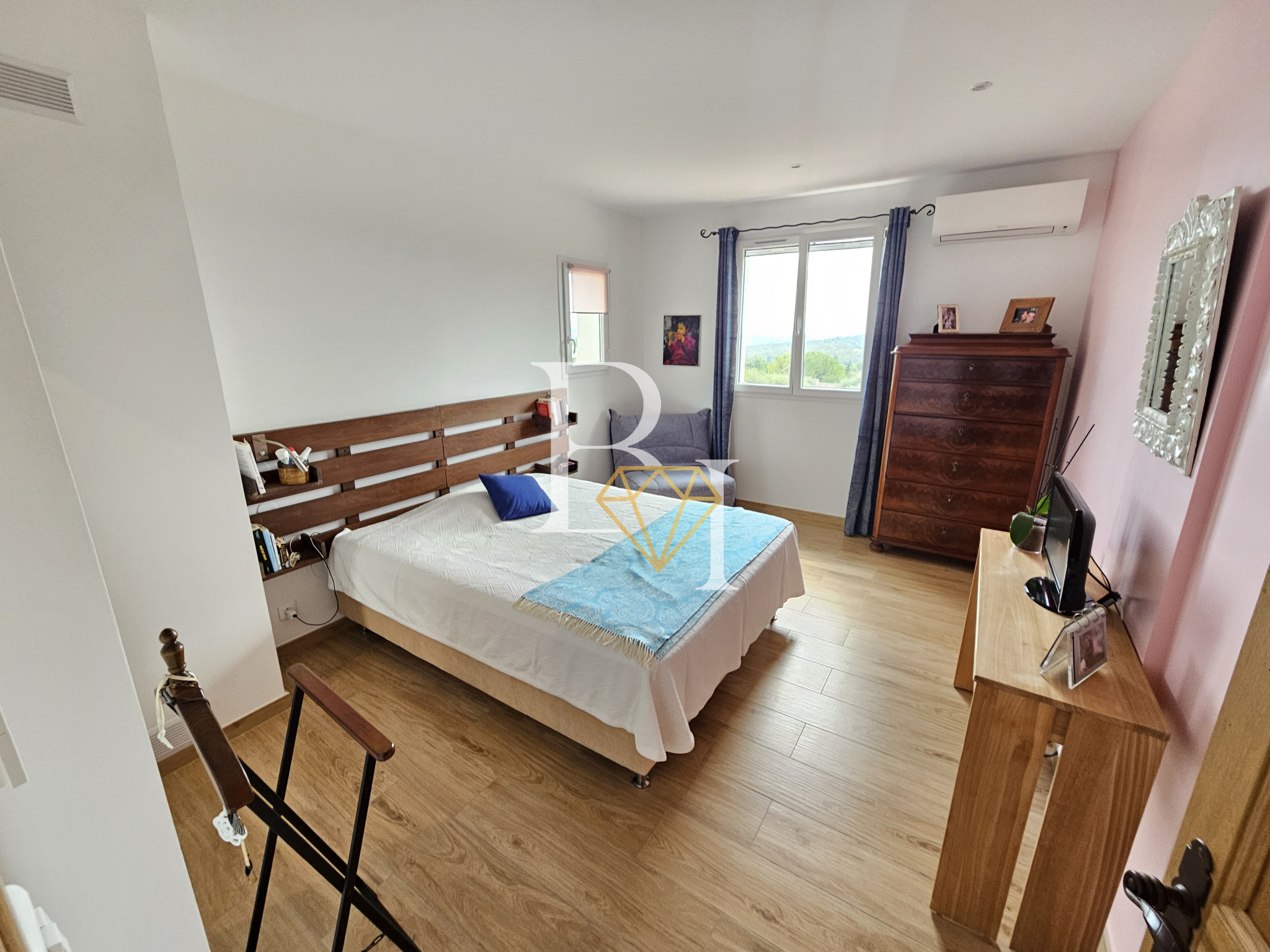 Prestations : Climatisation réversible, chauffage par pompe à chaleur (2021), arrosage automatique, panneaux solaires.
