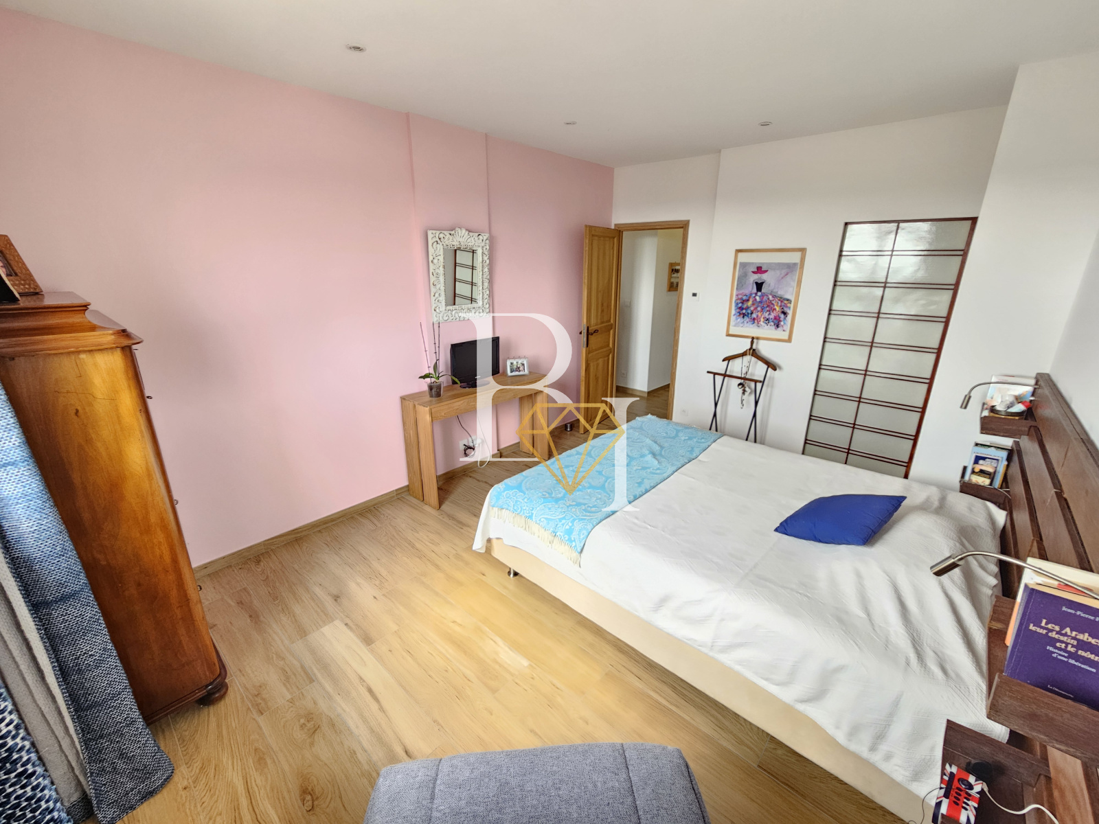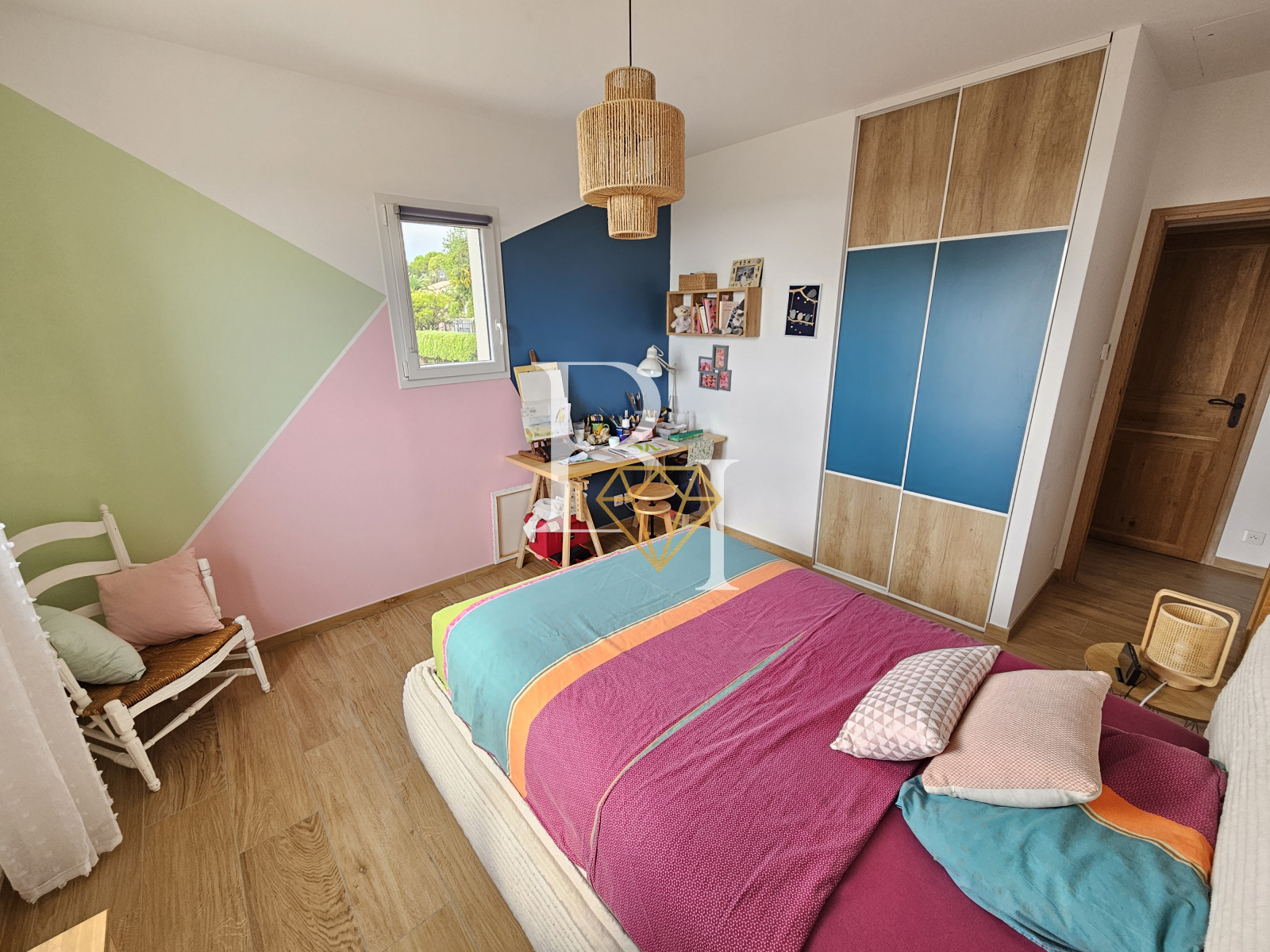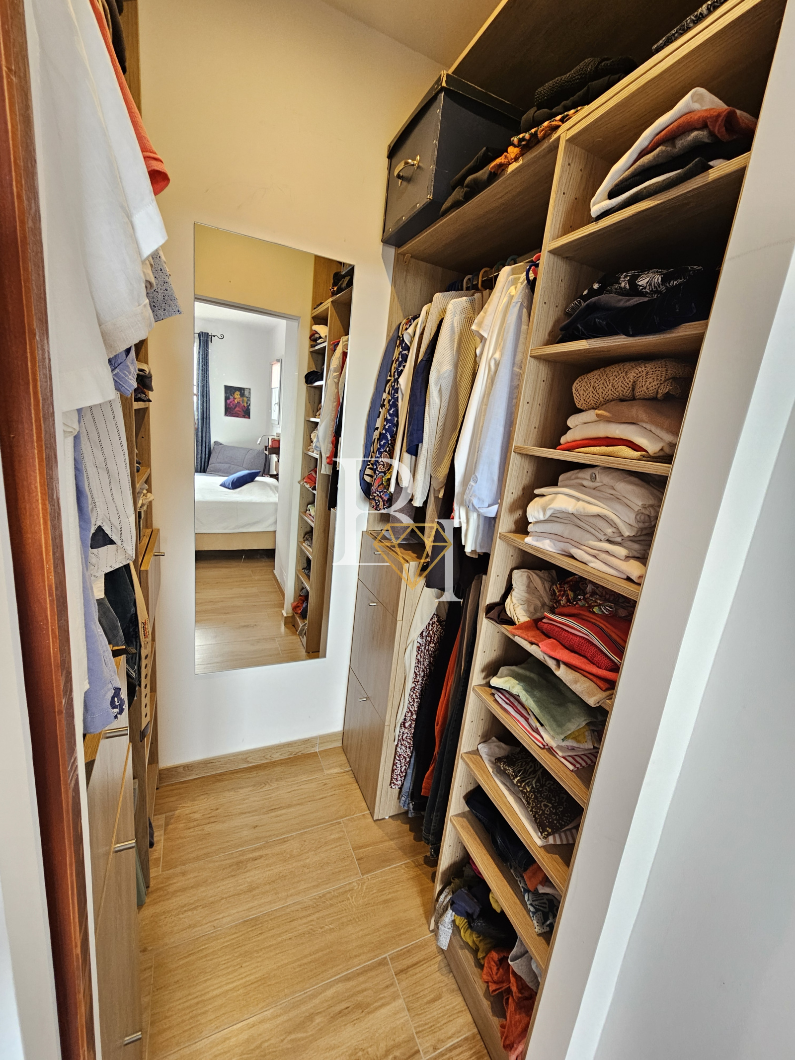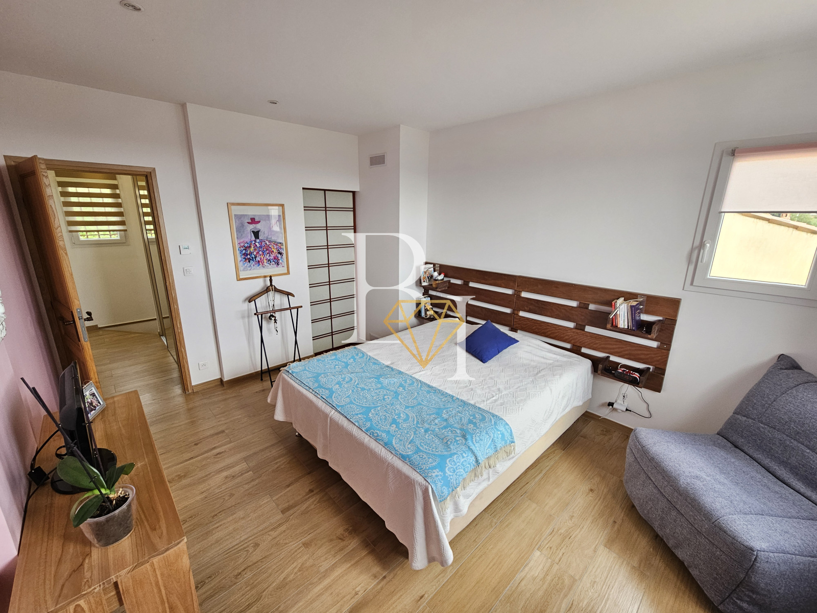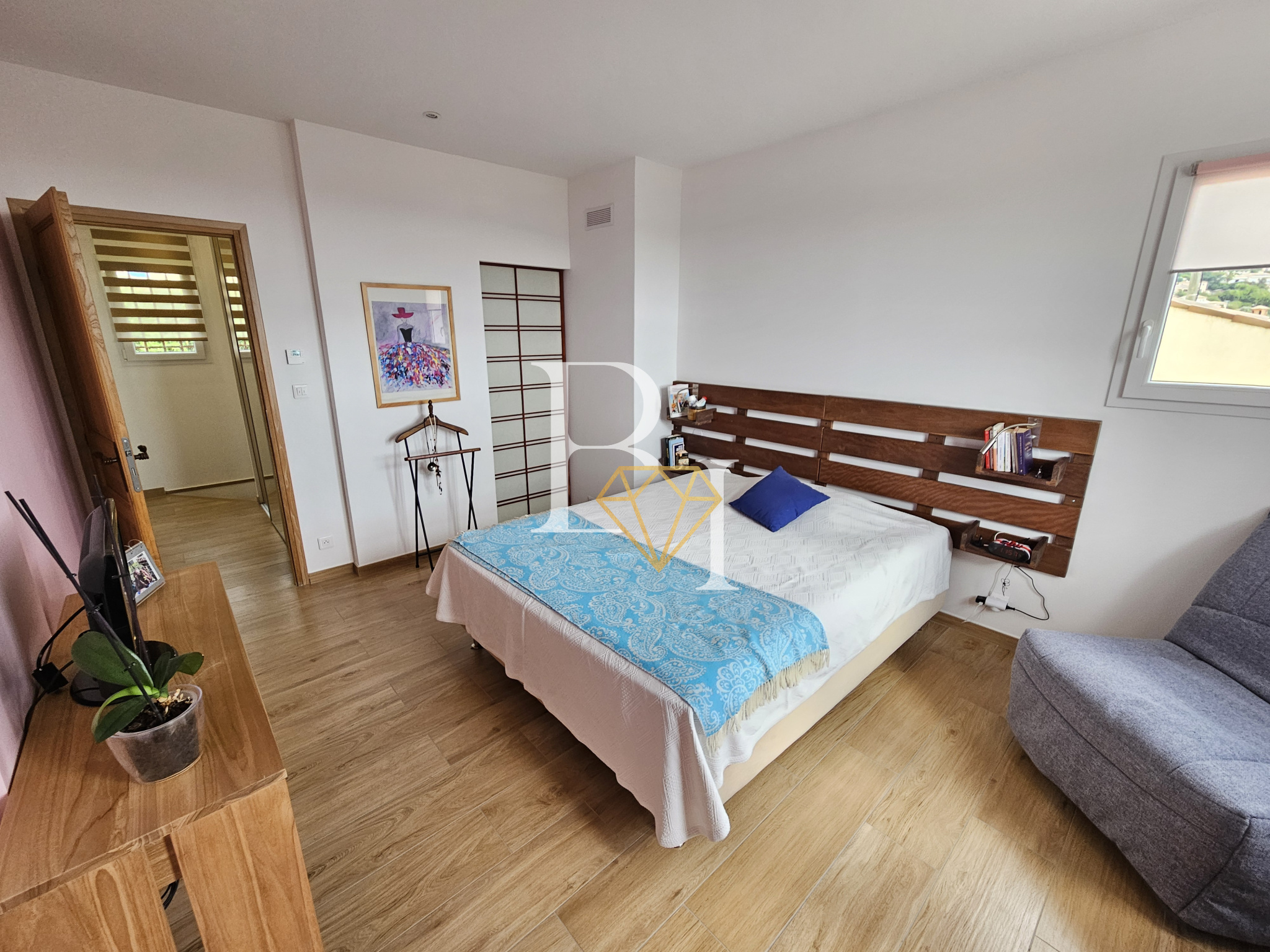 À l’étage se trouvent deux chambres spacieuses avec rangements, une salle de douche avec WC, ainsi qu’un dressing indépendant.